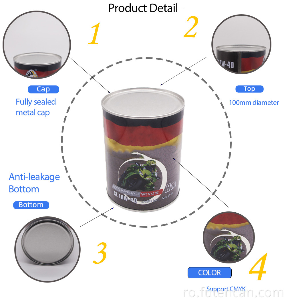 Compania noastră se specializează în producerea de cutii rotunde și cutii pătrate de 0,1 l ~ 25 litri. Aplicație pentru vopsea chimică, cerneală, solvent, diluant, adeziv, lubrifiere, ulei de motor, ne concentrăm, de asemenea, pe conserve alimentare, cum ar fi cutii de ulei de gătit comestibil, cutii de ulei de măsline. Nu doar o fabrică OEM, oferim idei și soluții aplicației dvs. de ambalare. În comparație cu alte materiale de ambalare, conservele noastre metalice au avantaje evidente. Proprietăți excelente de barieră: conservele din tablă au proprietăți de barieră mai bune decât orice alt material, cu proprietăți bune de barieră la gaz, rezistență la umiditate, umbrire ușoară și reținere a parfumului și etanșare fiabilă, care poate proteja în mod fiabil produsul.