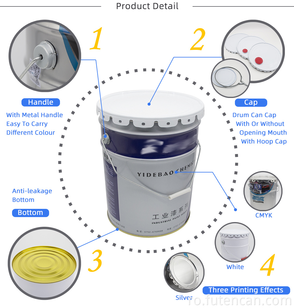 Suntem producători de găleți metalice/găleată de tablă/butoaie/cutie de tablă și putem produce produse conform personalizării. Suntem specializați în fabrică de găleți de plastic, cutii, găleți, toate tipurile de containere cu o capacitate de la 1L-30L, este utilizat pe scară largă pentru ambalarea vopselei/cerneală/solvent/întăritor/clei/unge/epoxidic/acoperire/adeziv/pulbere.