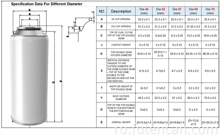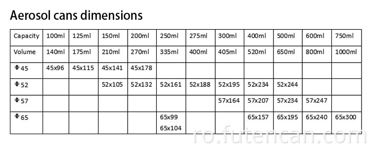 Cutia de vopsea cu aerosoli este un tip de vopsea care vine într-un recipient sub presiune sigilat și este eliberată într-un spray cu aerosoli atunci când apăsați un buton de supapă. Principalele materiale ale recipientului sunt tabla de tablă și aluminiu. poate fi folosit pentru vopsire, vopsea de îngrijire a mașinii, vopsea de uz casnic și altele etc. Fabrica noastră din China, specializată în producerea de cutii de tablă cu aerosoli și furnizarea de soluții de ambalare cu aerosoli clienților de peste 20 de ani și dedicată pentru a ajuta toți clienții și utilizatorii să exploateze piața și să depășească un brand competitiv.